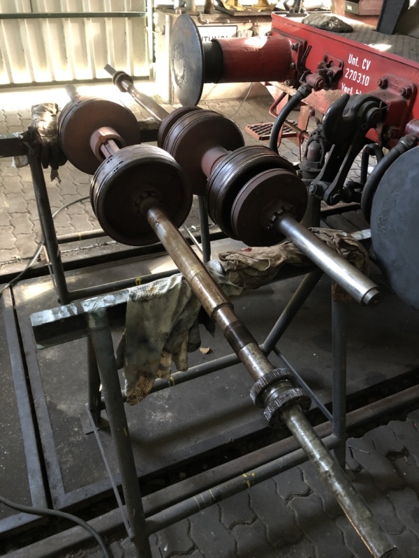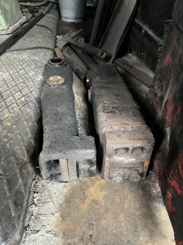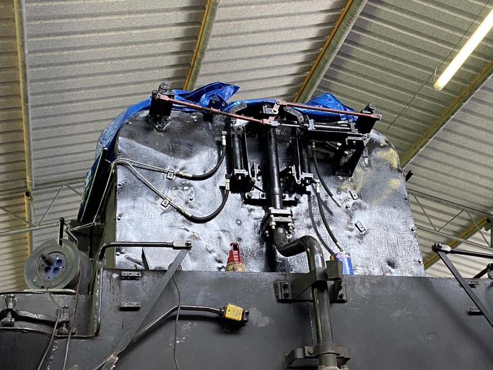 17.08.2021: Parallel wurde am Tender gearbeitet. Dieser sollte seine ursprünglichen Druckluftzylinder wieder erhalten, um die Ölklappen auf dem Tender per Druckluft vom Führerstand aus zu betätigen. Da sich diese ganze Mechanik seit 1996 nicht mehr an der Lokomotive befand, mussten alle Teile erst einmal wieder zusammengesucht werden. Hier sieht man bereits die angebauten Halter, an denen später die Druckluftzylinder angebracht werden.
