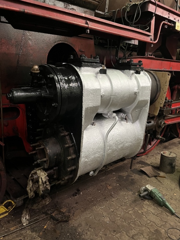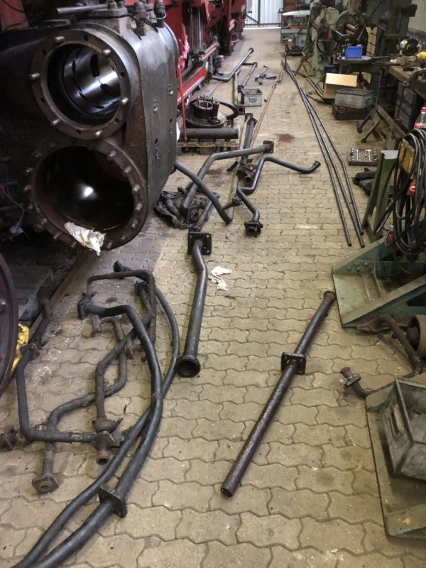 21.12.2020: Geplant ist eine Vollisolierung des Langkessels. Dafür muss die Kesselverkleidung entfernt werden. Dies bedeutet aber auch, dass alle Rohre und Schmierleitungen demontiert werden müssen.