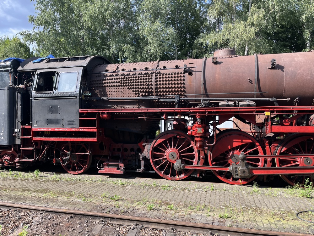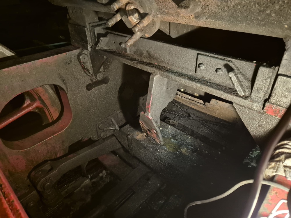 05.10.2024: Ein Blick ins Fahrwerk in Richtung Stehkessel. Hier haben bis vor kurzem noch die beiden Ölbrenner der Dampflokomotive gesessen.