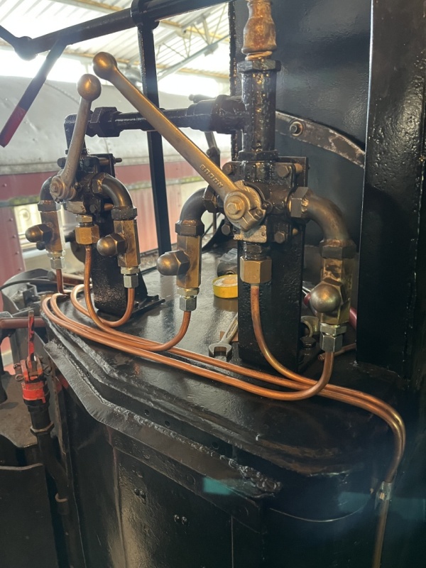 28.05.2018: Auf dem Kessel hinter dem Schornstein sitzt unter einer viereckigen Verkleidung der Regler der Dampflokomotive. Hier sieht man die Reglerglocke, die mit Hilfe eines Druckrings und einer Menge Muttern am Dampfsammelkasten befestigt ist.
