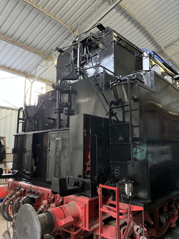 29.07.2023: Die Tenderstirnseite auf dem Führerstand wurde wieder zusammengebaut und neu lackiert.