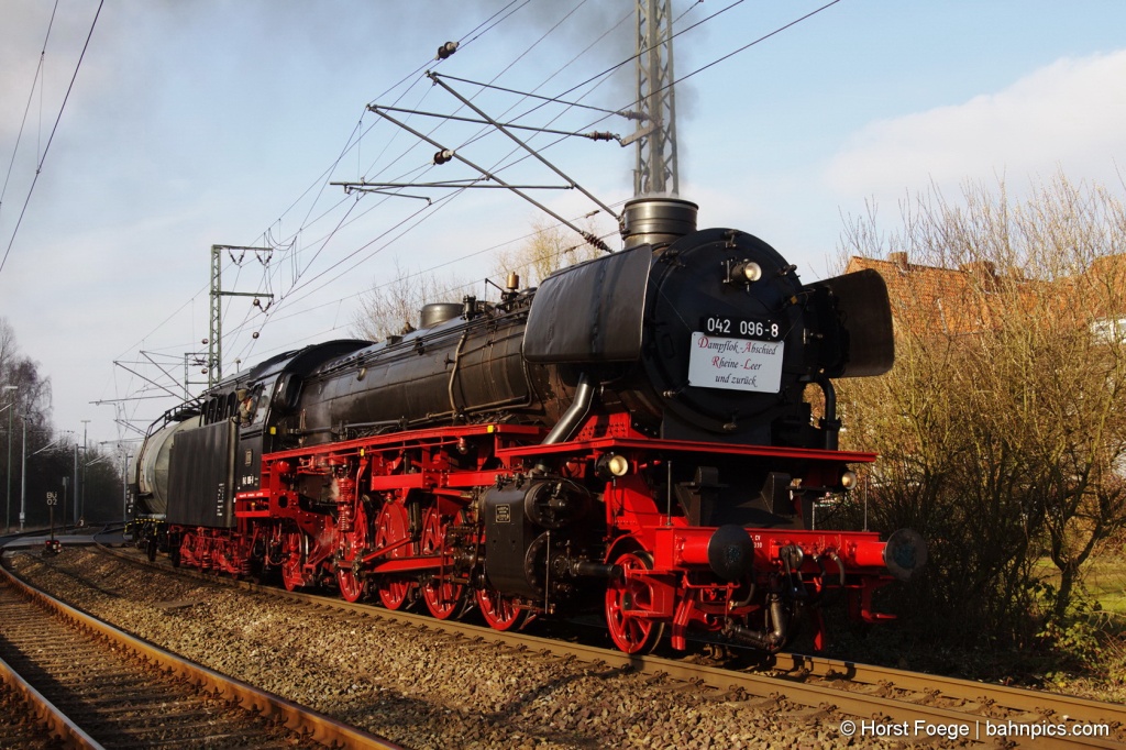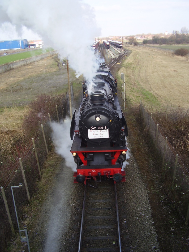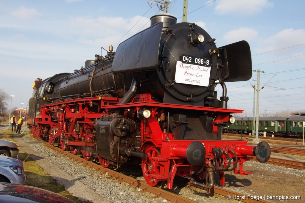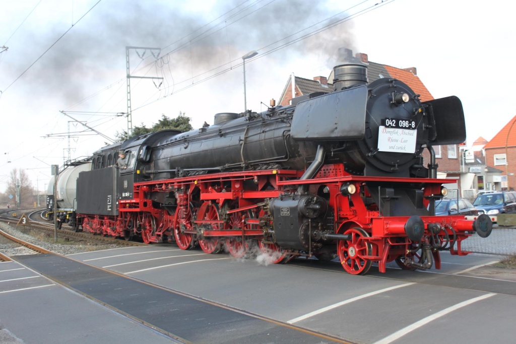 Mit der 41 096 (für diese Fahrt als 042 096-8 unterwegs) ging es von Salzgitter-Bad über Braunschweig, Peine, Lehrte, Hannover und Minden nach Papenburg, wo die Meyer Werft besichtigt werden konnte. Alternativ konnten die Fahrgäste weiter bis nach Emden fahren und dort an einer Stadtführung teilnehmen.