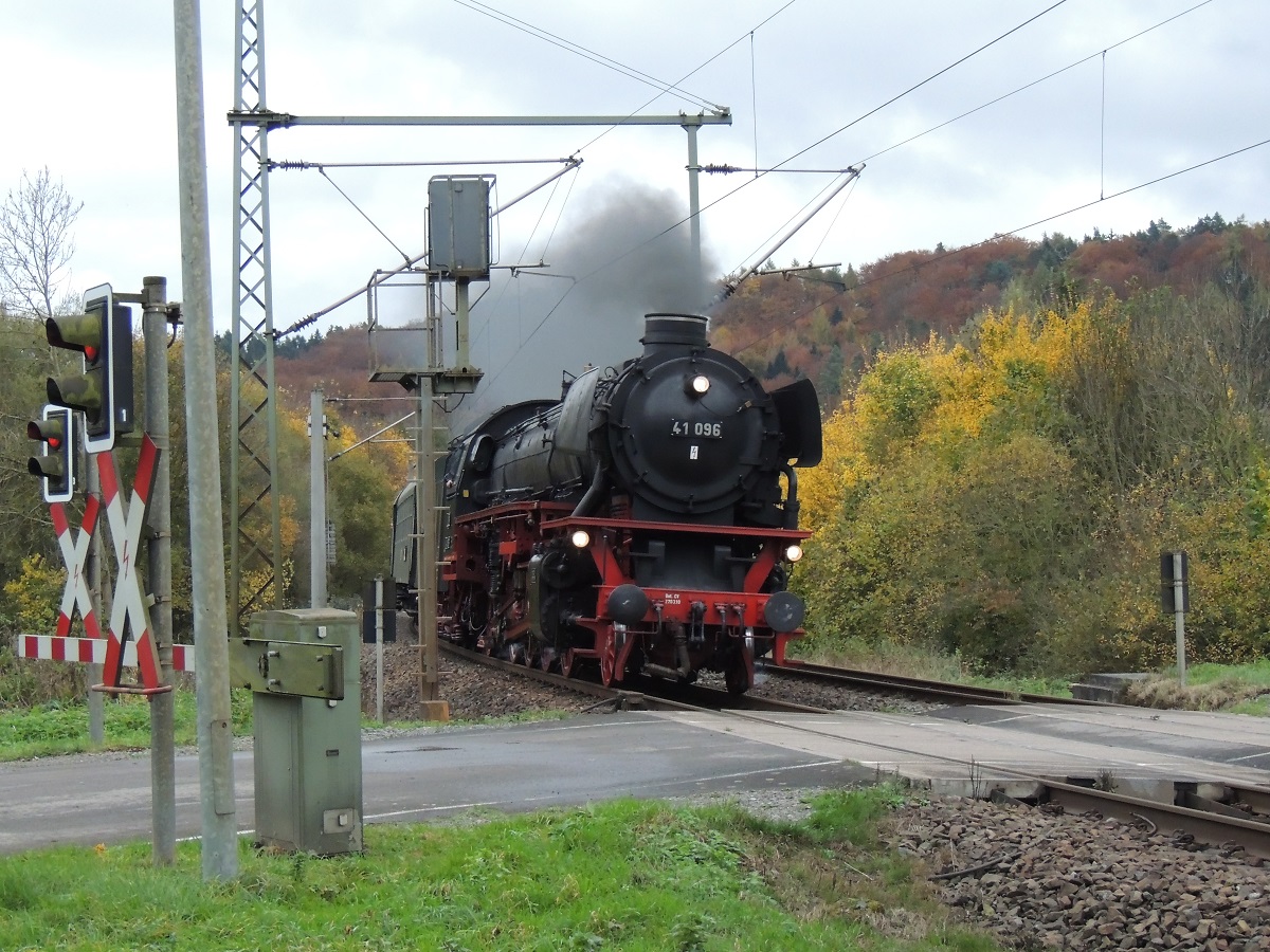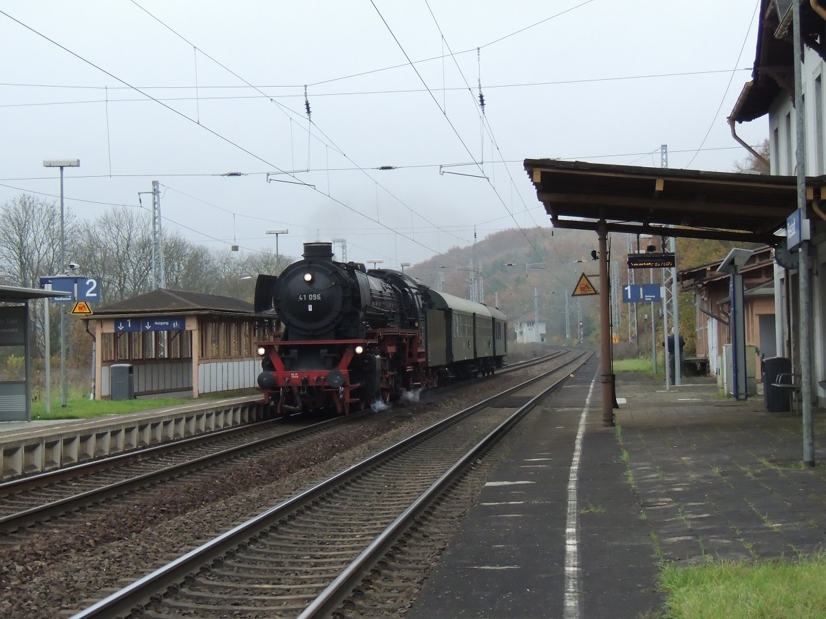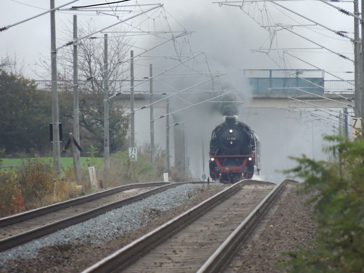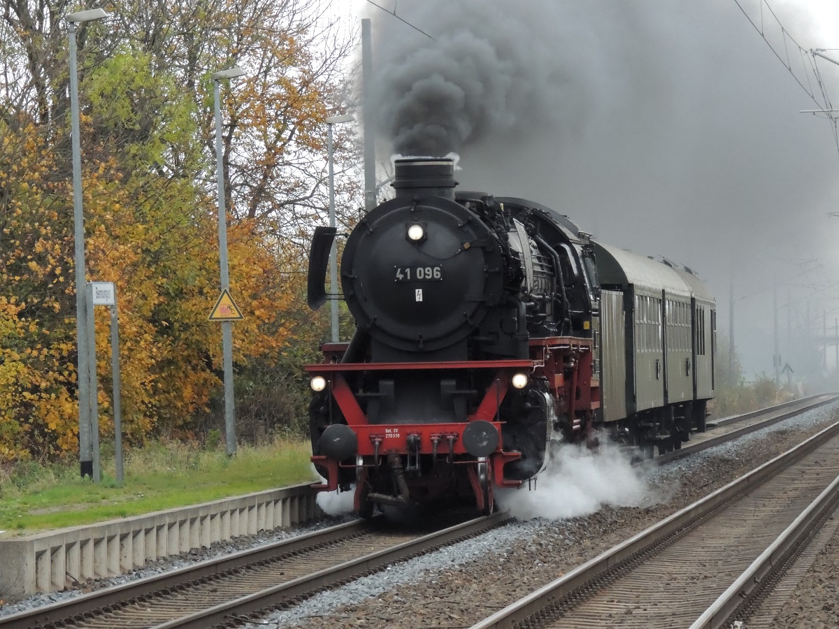 Getreu dem alten DB-Werbeslogan "Pünktlich wie die Bundesbahn" ging es um 9:00 Uhr nach Plan los. Über Halberstadt erreichten wir Aschersleben, dessen Bahnhof mit einem langen Pfiff durchfahren wurde – ganz so, als ob 41 096 ihre im dortigen Bahnbetriebswerk abgestellten Kolleginnen grüßen wollte.