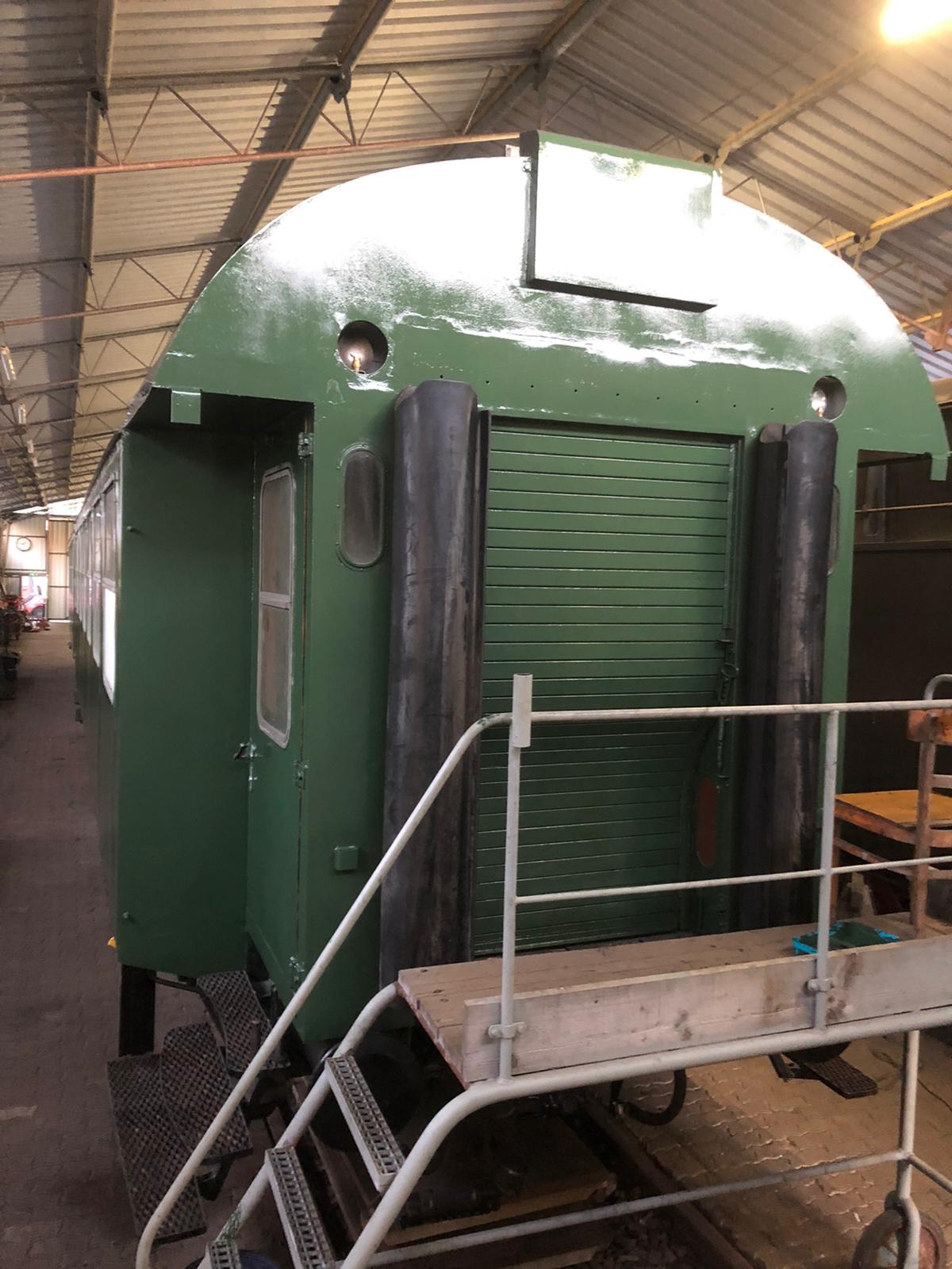In den vergangenen Monaten haben die Arbeiten an unserem Dreiachser-Pärchen, dessen Aufarbeitung nun schon mehrere Jahre andauert, eine finale Phase erreicht. Nachdem im vergangenen Winter die Arbeiten an den Innenräumen abgeschlossen wurden, begannen Im Frühjahr die Arbeiten an den Türen, Einstiegen und Übergängen. Die schlechte Substanz der Strukturen machte einen Austausch der Bodenbleche und Türverkleidungen notwendig. Die Dampfheizungen in den Einstiegen wurden ebenfalls komplett zerlegt und neu aufgebaut. Die Gummidichtungen an den Übergängen erneuert und zu guter Letzt erhielten alle 4 Einstiege einen neuen Anstrich. Danach konnte es an der Außenhaut der Wagen weitergehen. Beide Wagen erhielten Regenablaufbleche, um das bekannte Problem der undichten Fenster zu verbessern. Nachdem alle Blecharbeiten erledigt waren, konnten beide Wagen neu lackiert werden. Wir finden daß sich das Ergebnis sehen lassen kann. |